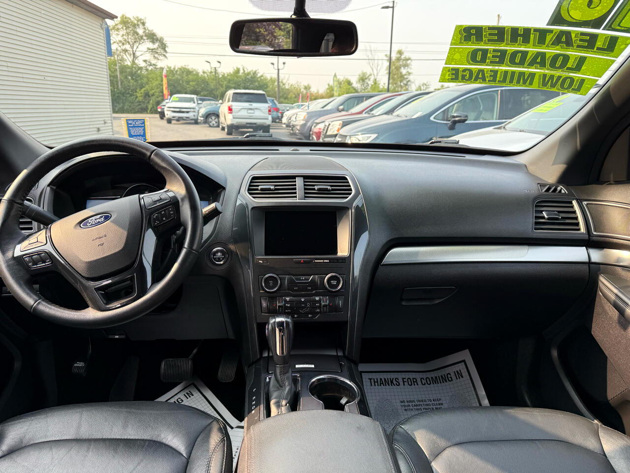 Buckle up and get ready for adventure in this sleek Silver 2018 Ford Explorer! With its eye-catching chrome grille and LED brakelights, this beauty is sure to turn heads wherever you go. Pop open the liftgate to reveal a spacious cargo area with concealed storage for all your gear. The interior boasts premium cloth seats, a leather steering wheel, and a user-friendly layout with a manual tilt/telescoping steering column. Feel the power of the 3.65 axle ratio and automatic full-time four-wheel drive as you hit the open road with confidence. The 18.6-gallon fuel tank means less time at the pump and more time enjoying the ride. Safety is a top priority with side impact beams, dual-stage front airbags, and a back-up camera with washer for added peace of mind. Whether you're running errands in the city or exploring off the beaten path, this Ford Explorer has everything you need for a thrilling driving experience. Don't miss out on your chance to make this stylish SUV your own!