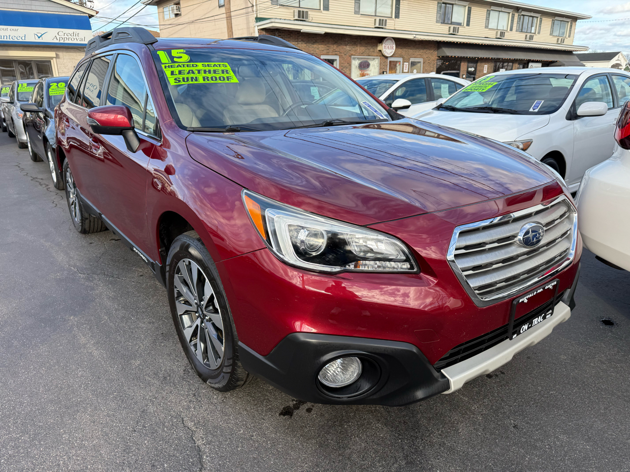 Safety is a top priority in this Outback, with features like Rear Collision Warning and Low Tire Pressure Warning giving you peace of mind on the road. With its sporty appearance, impressive performance, and abundance of creature comforts, this Red 2015 Subaru Outback is ready to be your trusty companion on all your adventures.