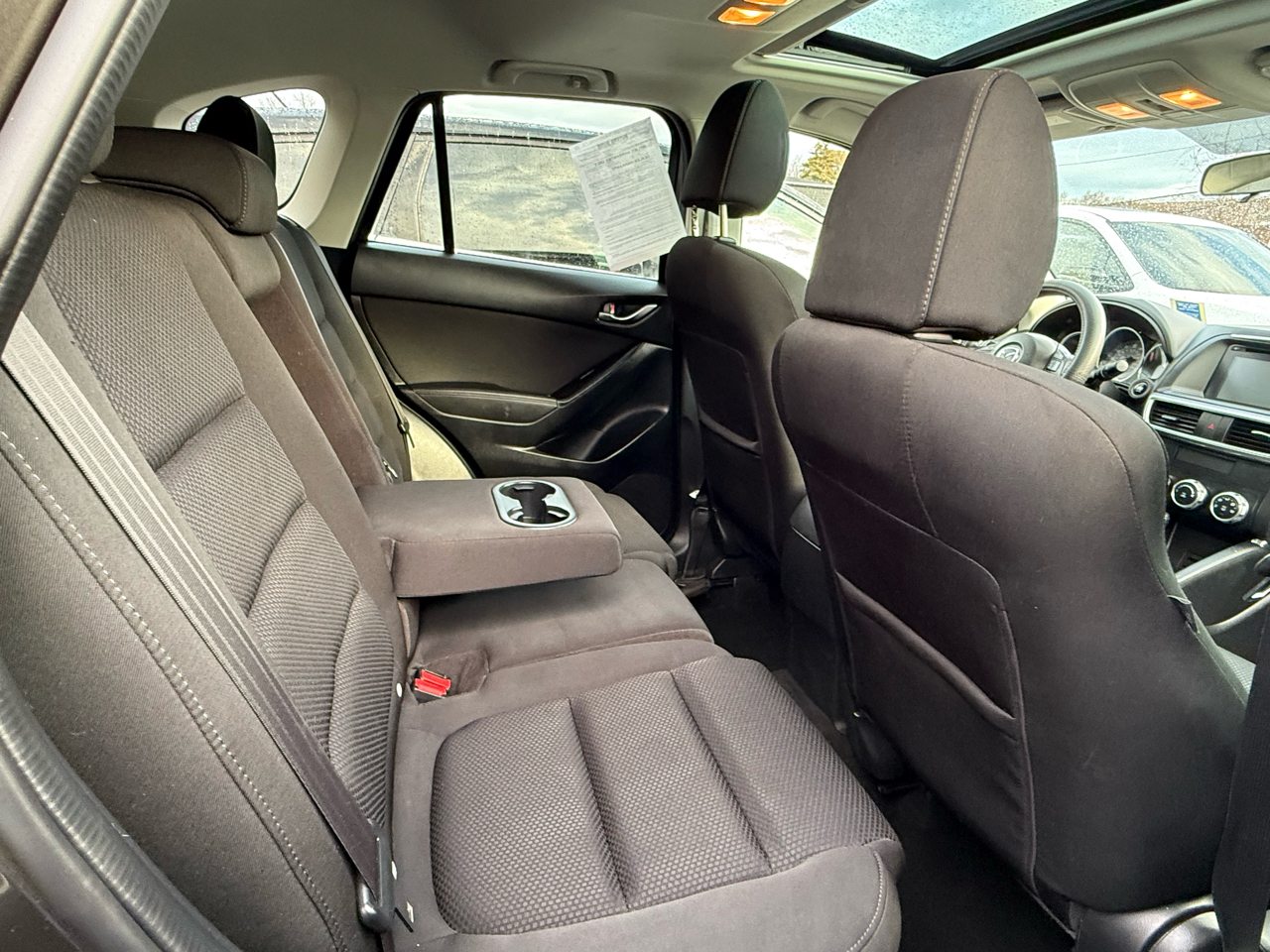 Get ready to hit the road in style with this sleek Brown 2016 Mazda CX-5! Engineered to provide a smooth driving experience, this Mazda is equipped with a 2.5L SKYACTIV-G DOHC 4-Cylinder engine and a 6-speed SKYACTIV-DRIVE Automatic transmission with manual-mode and sport function. With its Automatic Full-Time All-Wheel Drive system, you can confidently navigate various road conditions with ease. The modern design features body-colored accents, aluminum alloy wheels, and a sporty lip spoiler for a touch of attitude. Inside, you'll find comfortable sport-shaped front seats with power adjustment, a leather-wrapped steering wheel, and convenient features like cruise control and remote keyless entry. Safety is a top priority with blind spot monitoring and rear collision warning systems to keep you protected on the go. Whether you're commuting to work or embarking on a weekend adventure, the Mazda CX-5 is ready for the journey ahead. Don't miss out on the opportunity to make this stylish and reliable SUV yours today!